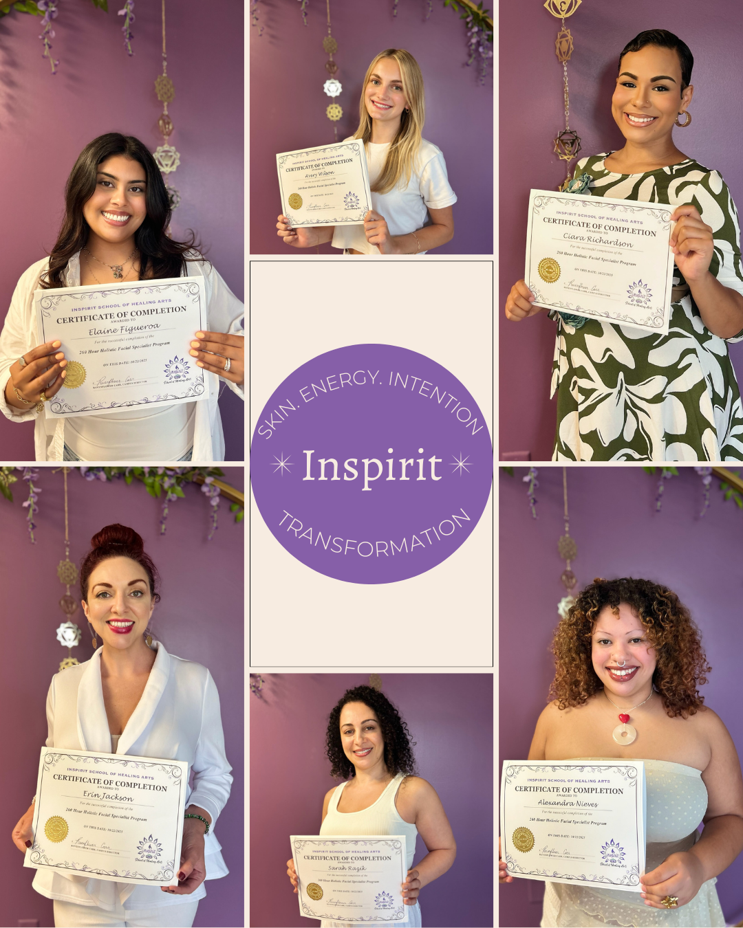 Organic, Plant-Based Skincare Products: Students will train using our in-house line, Inspirit Botanicals - a high-vibrational collection of organic products rich in plant medicine, formulated to support deep healing and radiant skin.